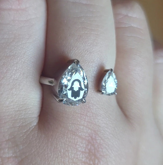 טבעת יהלומי מעבדה טיפה עם חריטת לייזר חמסה בחמסה - זהב 14 קראט צהוב/לבן/רוז גולד