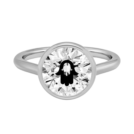 טבעת חותם יהלום מעבדה עגול עם חריטת לייזר חמסה בחמסה - זהב 14 קראט לבן/צהוב/רוז גולד