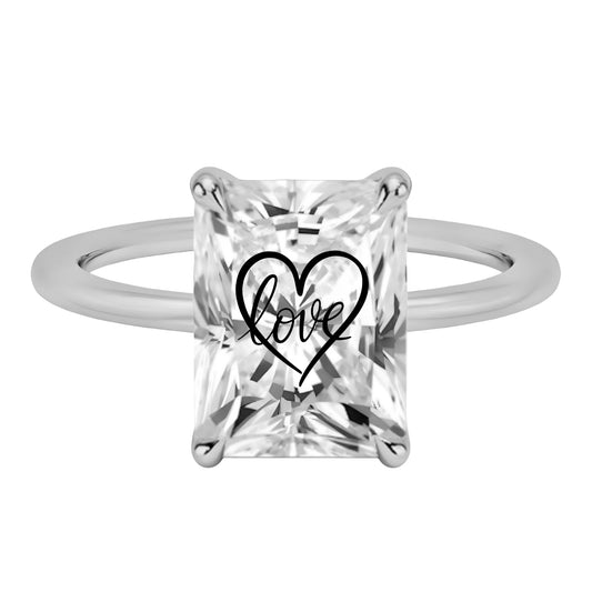 טבעת יהלום מעבדה רדיאן חריטה לב Love - זהב 14 קראט צהוב/לבן/רוז גולד