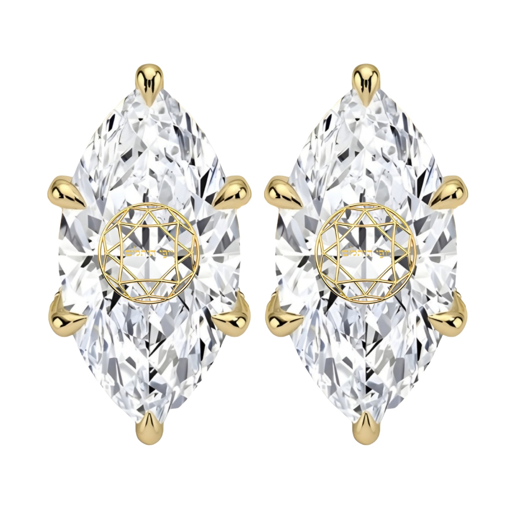 זוג עגילי יהלום מעבדה מרקיזה חריטה בעיצוב אישי - זהב 14 קראט צהוב/לבן/רוז גולד