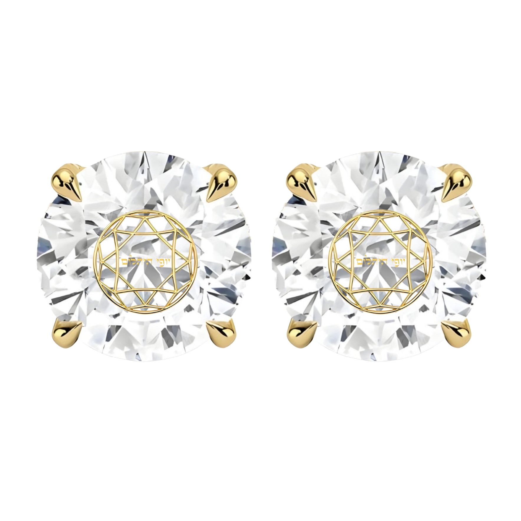 זוג עגילי יהלום מעבדה עגול חריטה בעיצוב אישי - זהב 14 קראט צהוב/לבן/רוז גולד