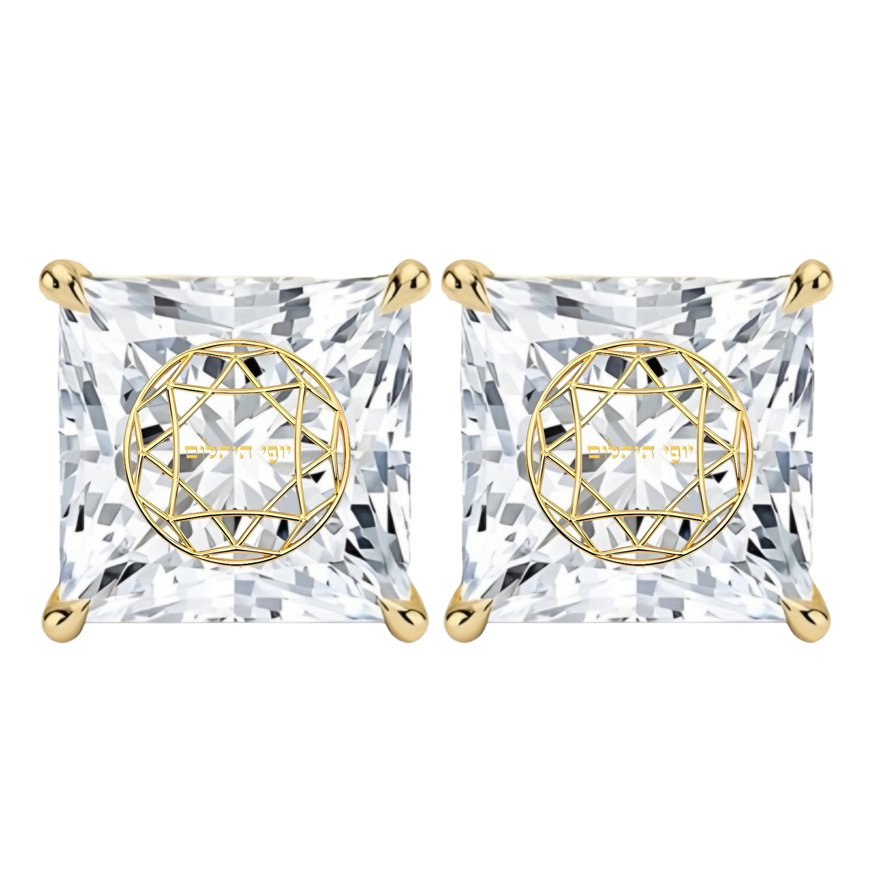 זוג עגילי יהלום מעבדה פרינסס חריטה בעיצוב אישי - זהב 14 קראט צהוב/לבן/רוז גולד