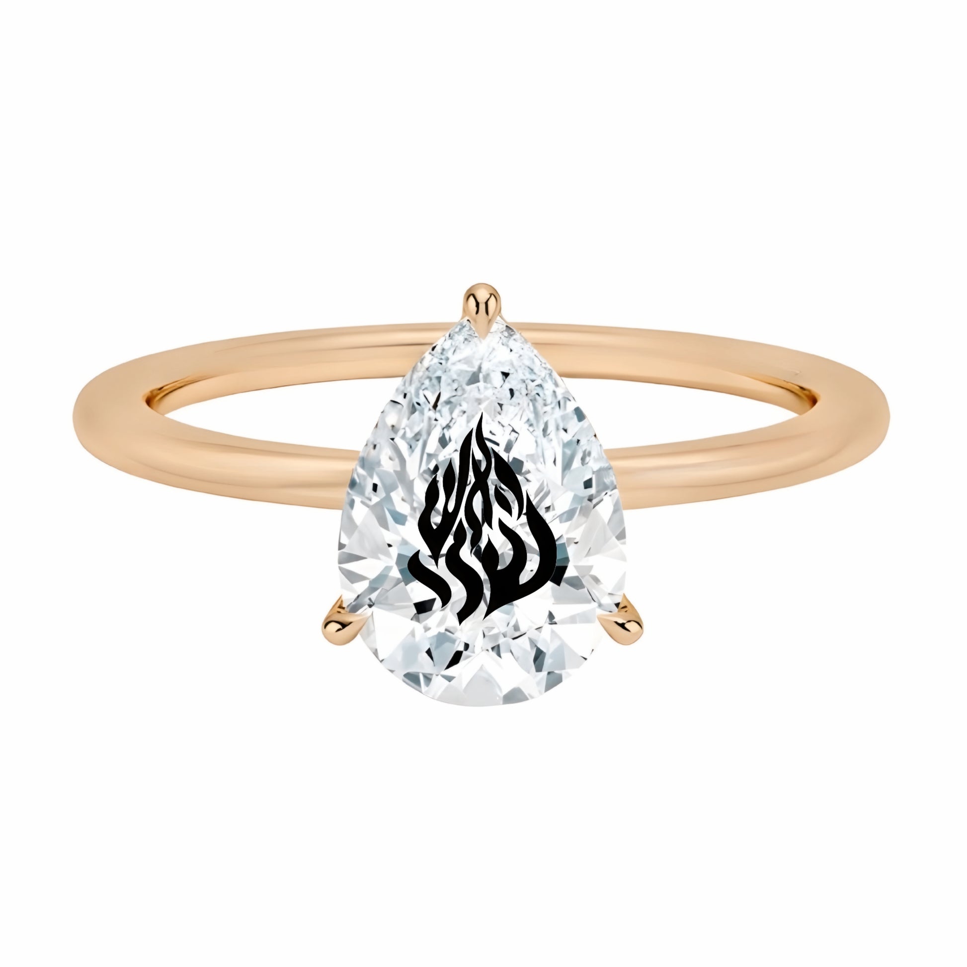 טבעת אבן מוסונייט טיפה עם חריטת לייזר האש שלי - זהב 14 קראט צהוב/לבן/רוז גולד