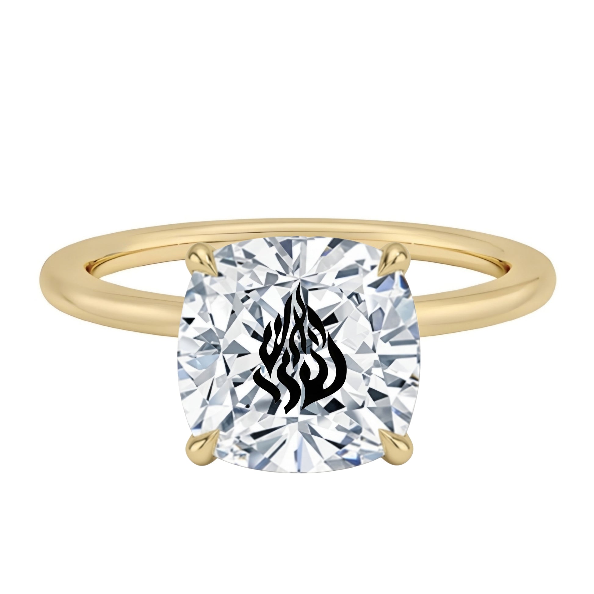 טבעת אבן מוסונייט קושן עם חריטת לייזר האש שלי - זהב 14 קראט צהוב/לבן/רוז גולד