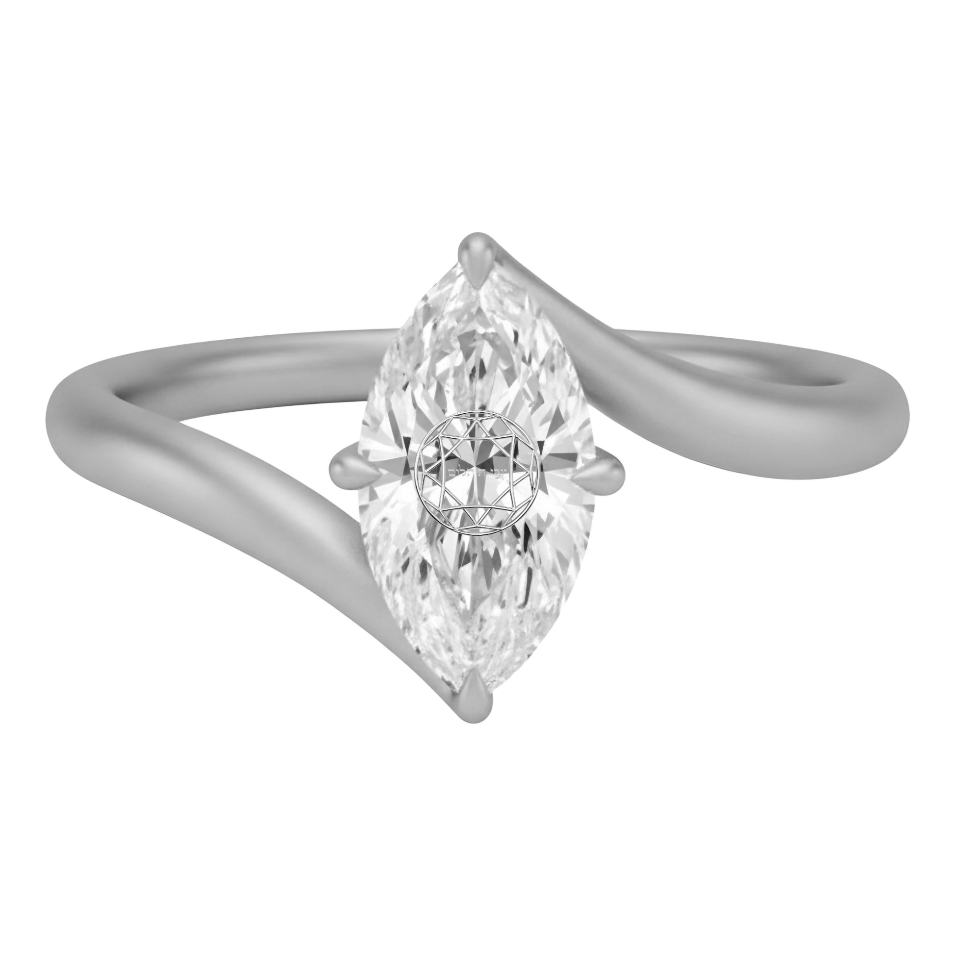 טבעת טוויסט אבן מוסונייט מרקיזה עם חריטת לייזר בעיצוב אישי - כסף 925