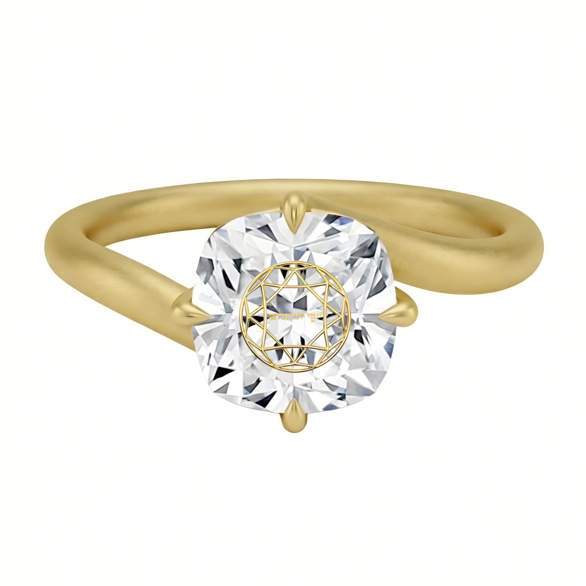 טבעת טוויסט אבן מוסונייט קושן עם חריטת לייזר בעיצוב אישי – זהב 14 קראט לבן/צהוב/רוז גולד