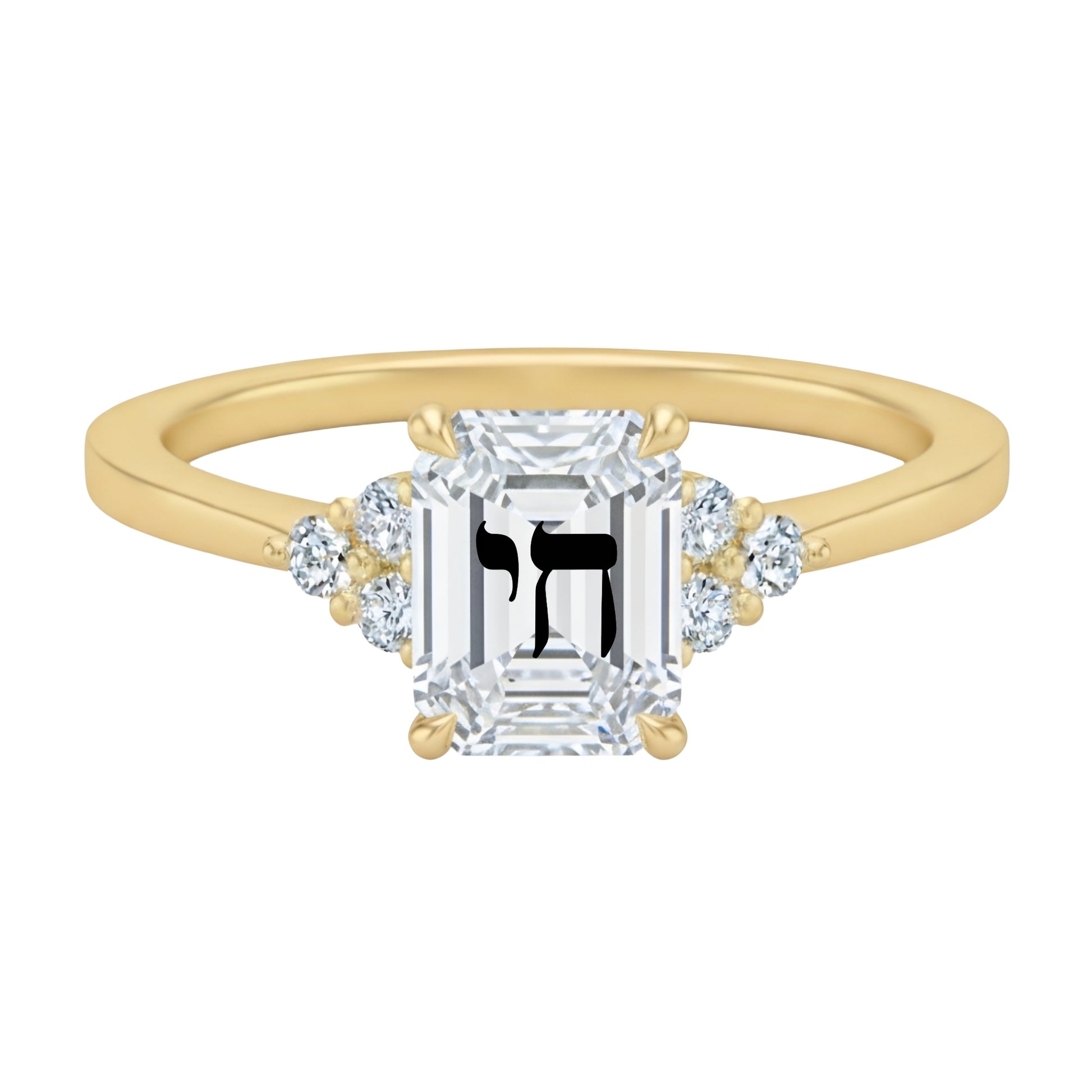 טבעת יהלום מעבדה אמרלד חריטה חי ויהלומים בצדדים - זהב 14 קראט צהוב/לבן/רוז גולד