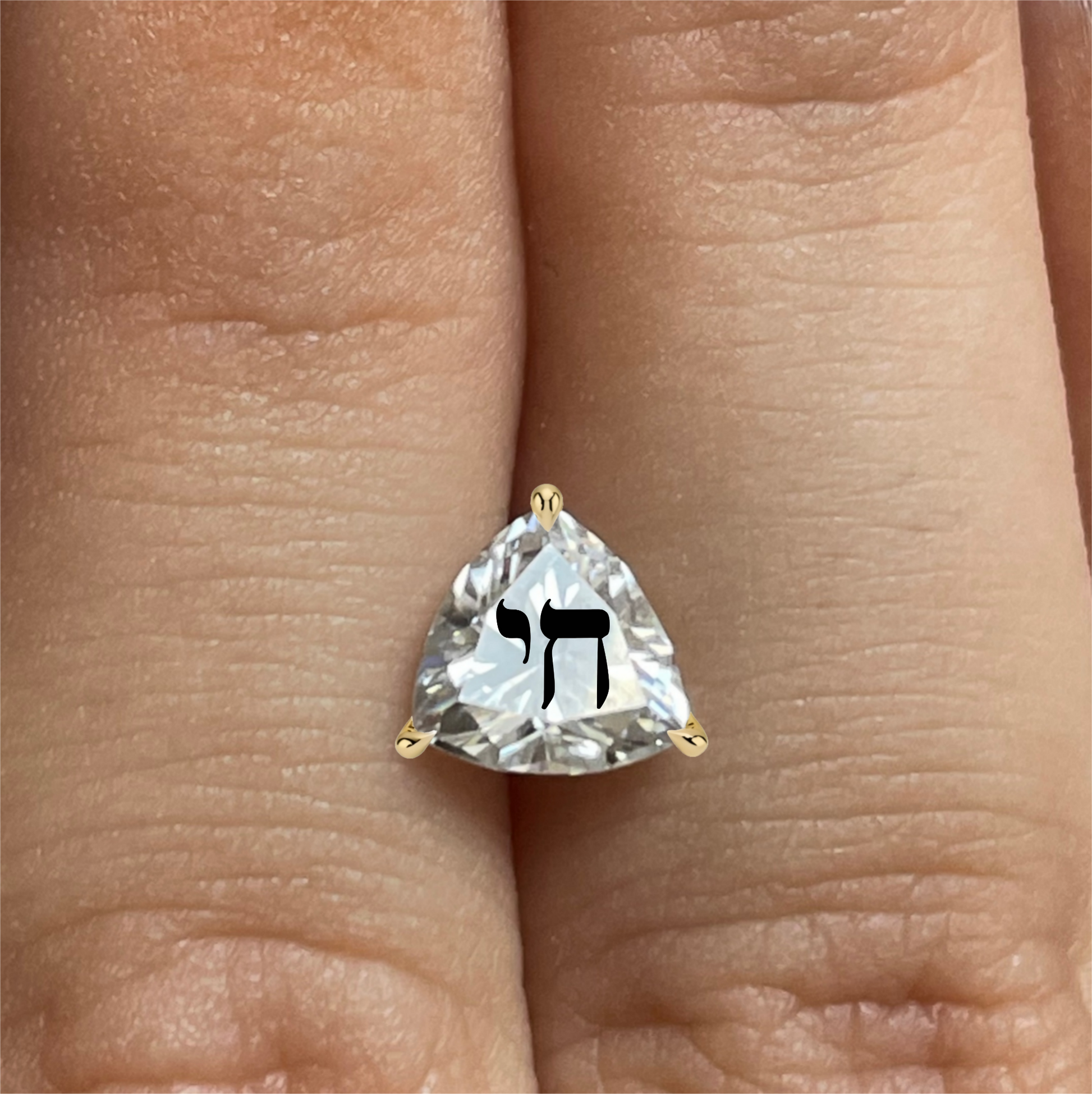 עגיל אבן מוסונייט משולש עם חריטת לייזר חי – זהב 14 קראט צהוב/לבן/רוז גולד