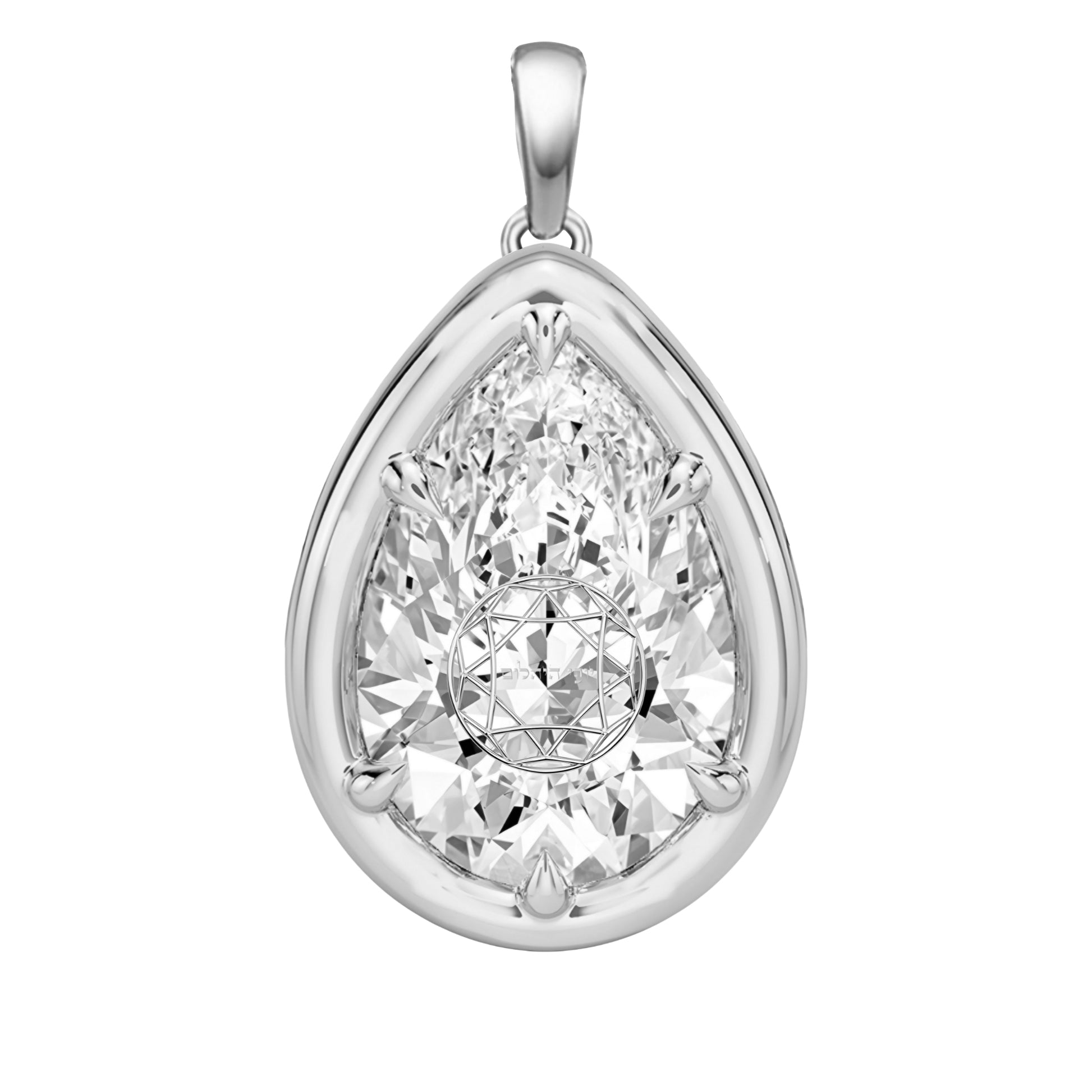 תליון אבן מוסונייט טיפה עם חריטת לייזר בעיצוב אישי - שיבוץ בזל ציפורני חתול כסף 925