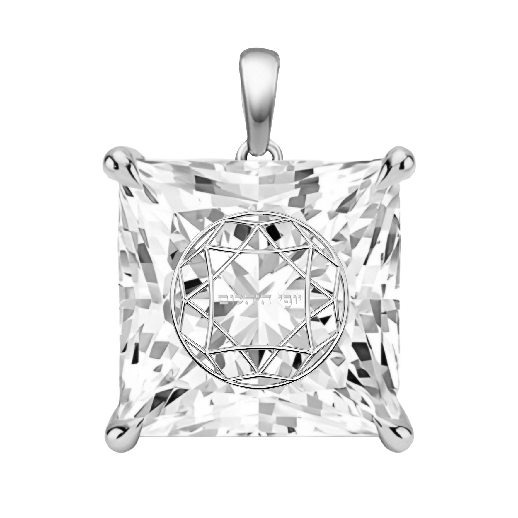 תליון אבן מוסונייט פרינסס עם חריטת לייזר בעיצוב אישי - כסף 925