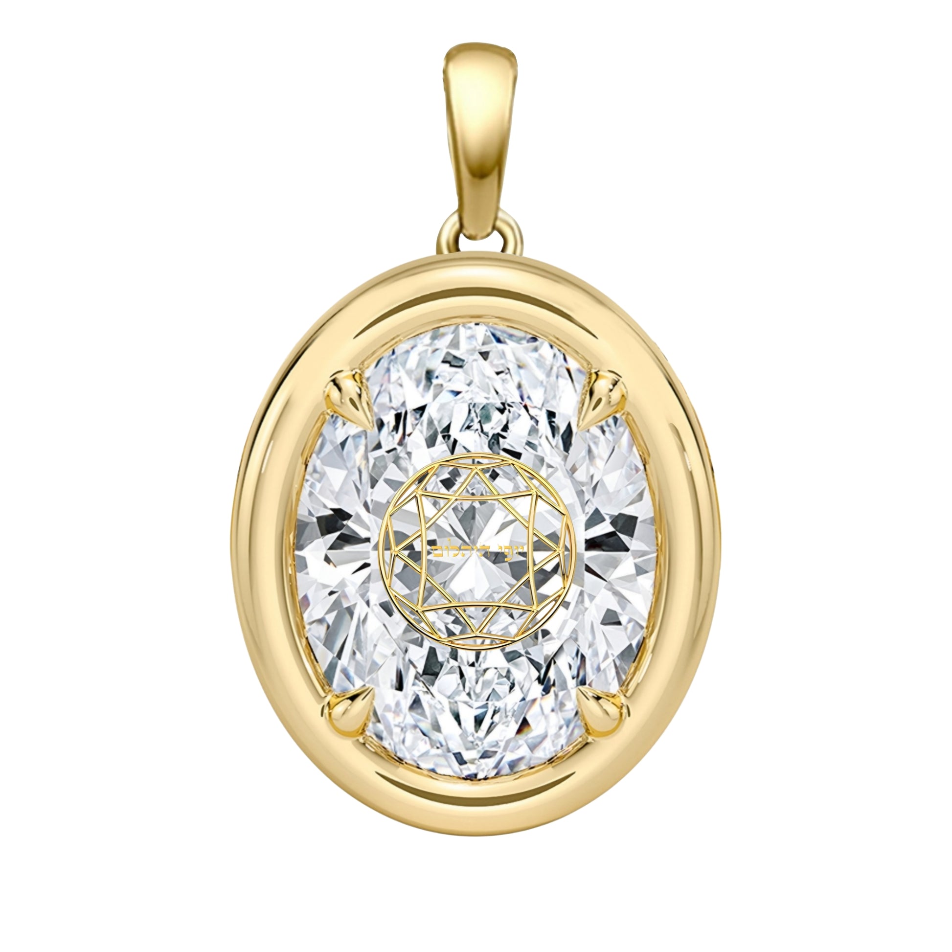 תליון יהלום מעבדה אובל עם חריטת לייזר בעיצוב אישי - שיבוץ בזל ציפורני חתול זהב 14 קראט צהוב/לבן/רוז גולד