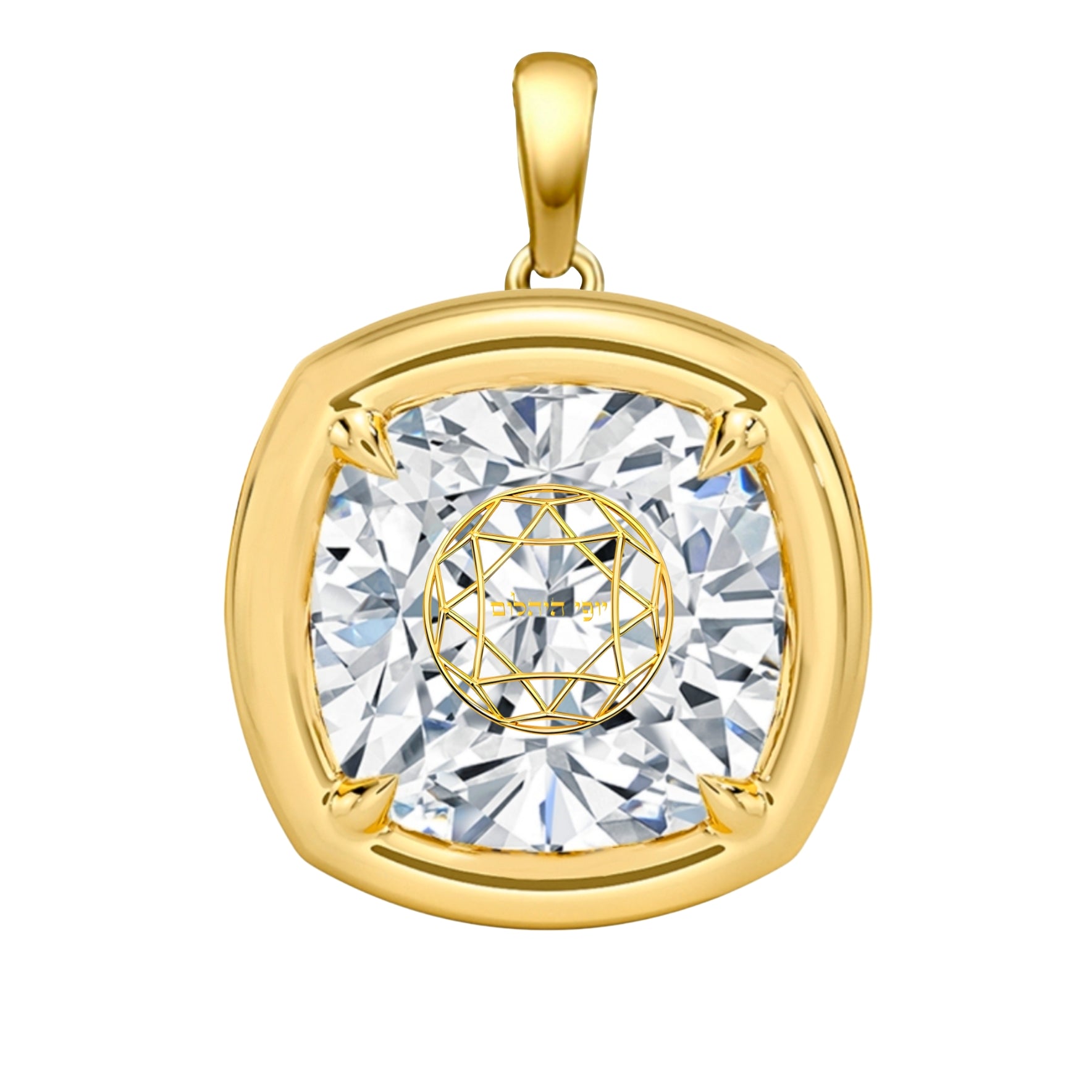 תליון יהלום מעבדה קושן שיבוץ בזל וציפורני חתול זהב 18 קראט צהוב/לבן/רוז גולד