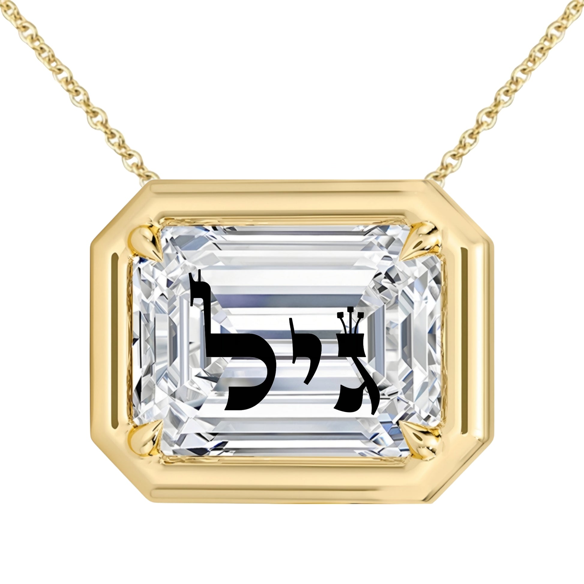 Laser Engrave On Lab Grown Diamond Emerald Bezel Prongs Pendant Custom Name Biblical Letters Engraved Necklace 14K Gold