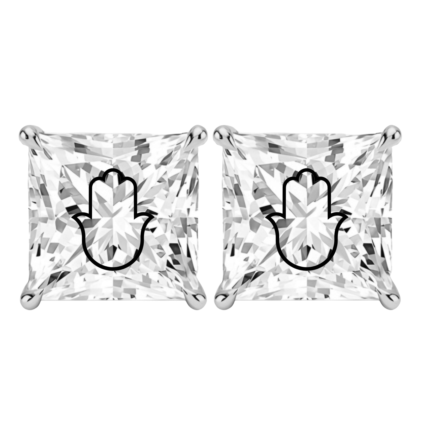 זוג עגילי אבן מוסונייט פרינסס עם חריטת לייזר חמסה - כסף 925