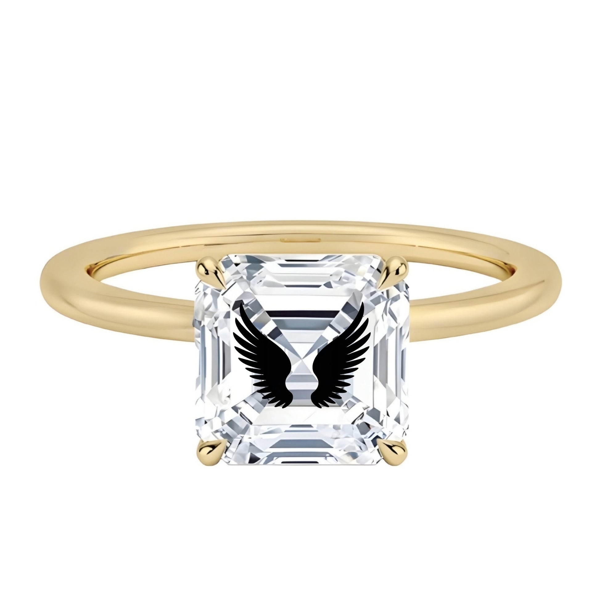 טבעת אבן מוסונייט אשר עם חריטת לייזר כנפיים - זהב 14 קראט צהוב/לבן/רוז גולד