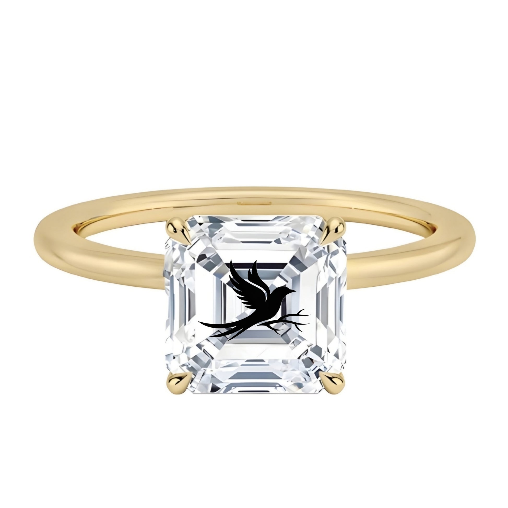 טבעת אבן מוסונייט אשר עם חריטת לייזר עורב וענף - זהב 14 קראט צהוב/לבן/רוז גולד