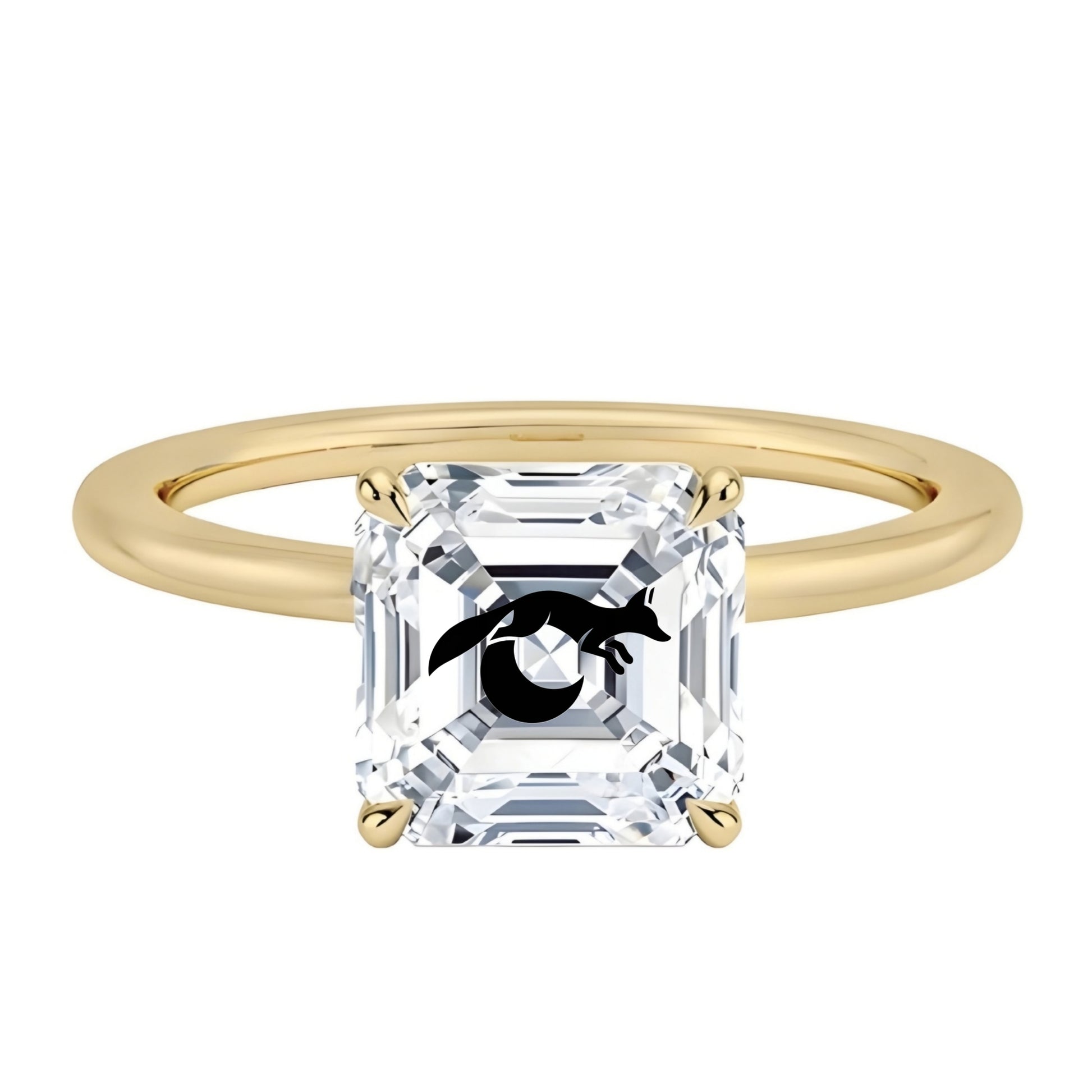 טבעת אבן מוסונייט אשר עם חריטת לייזר שועל ירח - זהב 14 קראט צהוב/לבן/רוז גולד