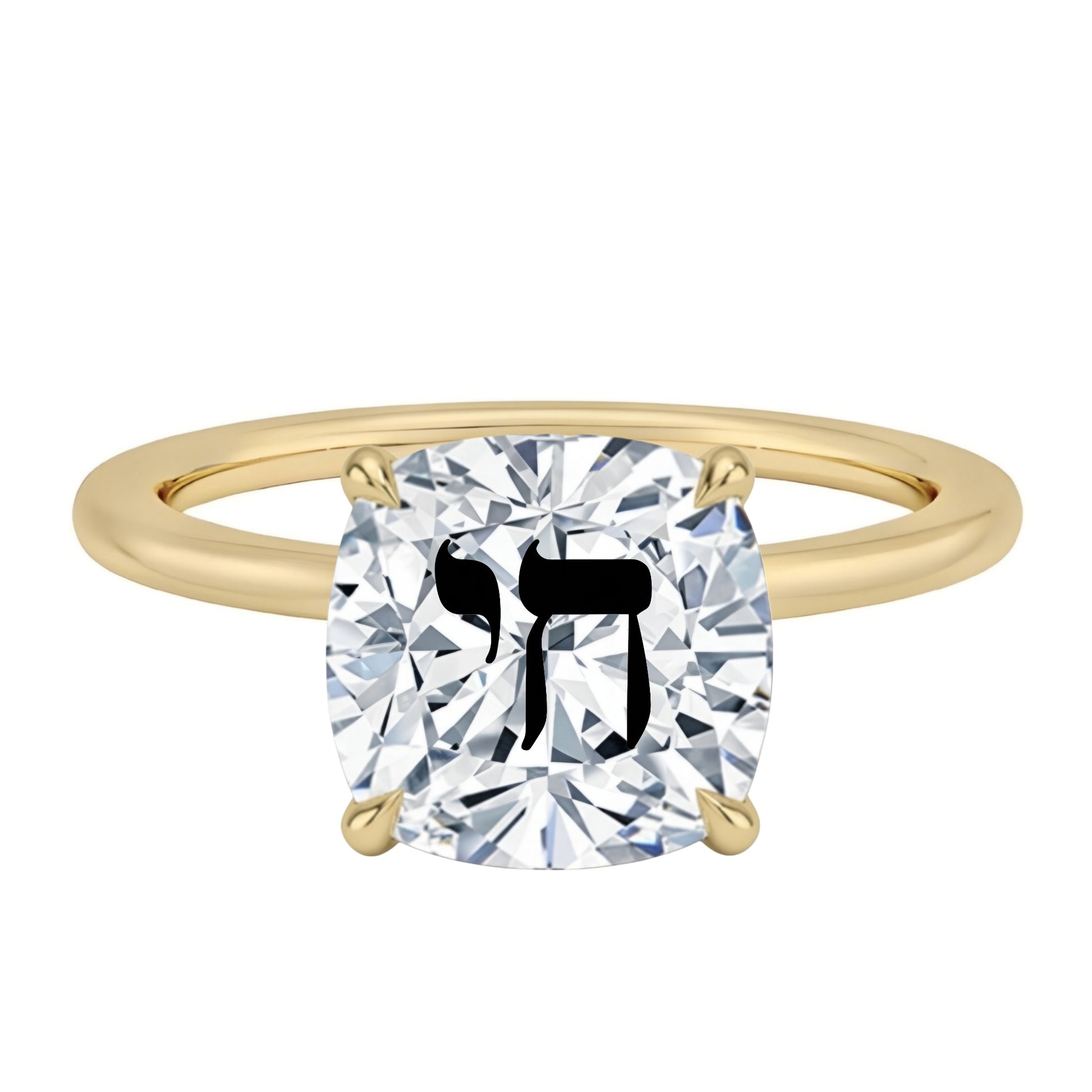 טבעת אבן מוסונייט קושן עם חריטת לייזר חי - זהב 14 קראט צהוב/לבן/רוז גולד