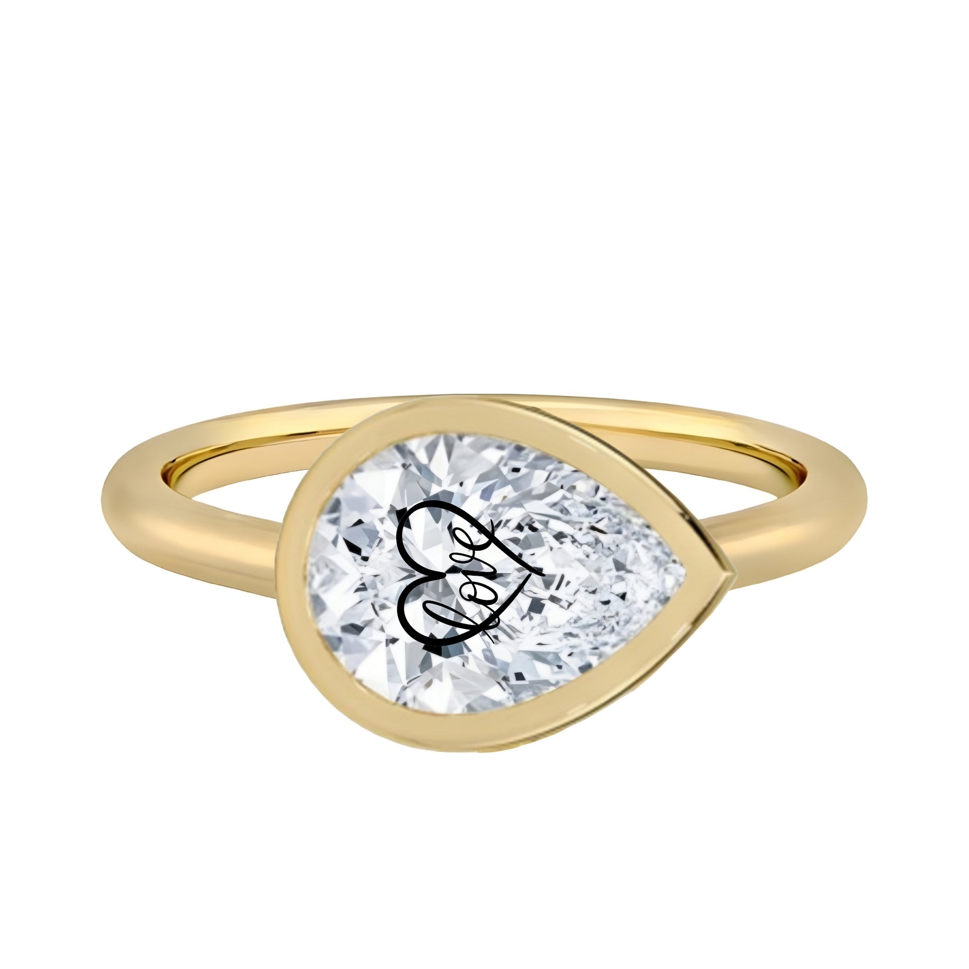 טבעת חותם יהלום מעבדה טיפה עם חריטת לייזר לב Love - זהב 14 קראט לבן/צהוב/רוז גולד – טבעת ייחודית