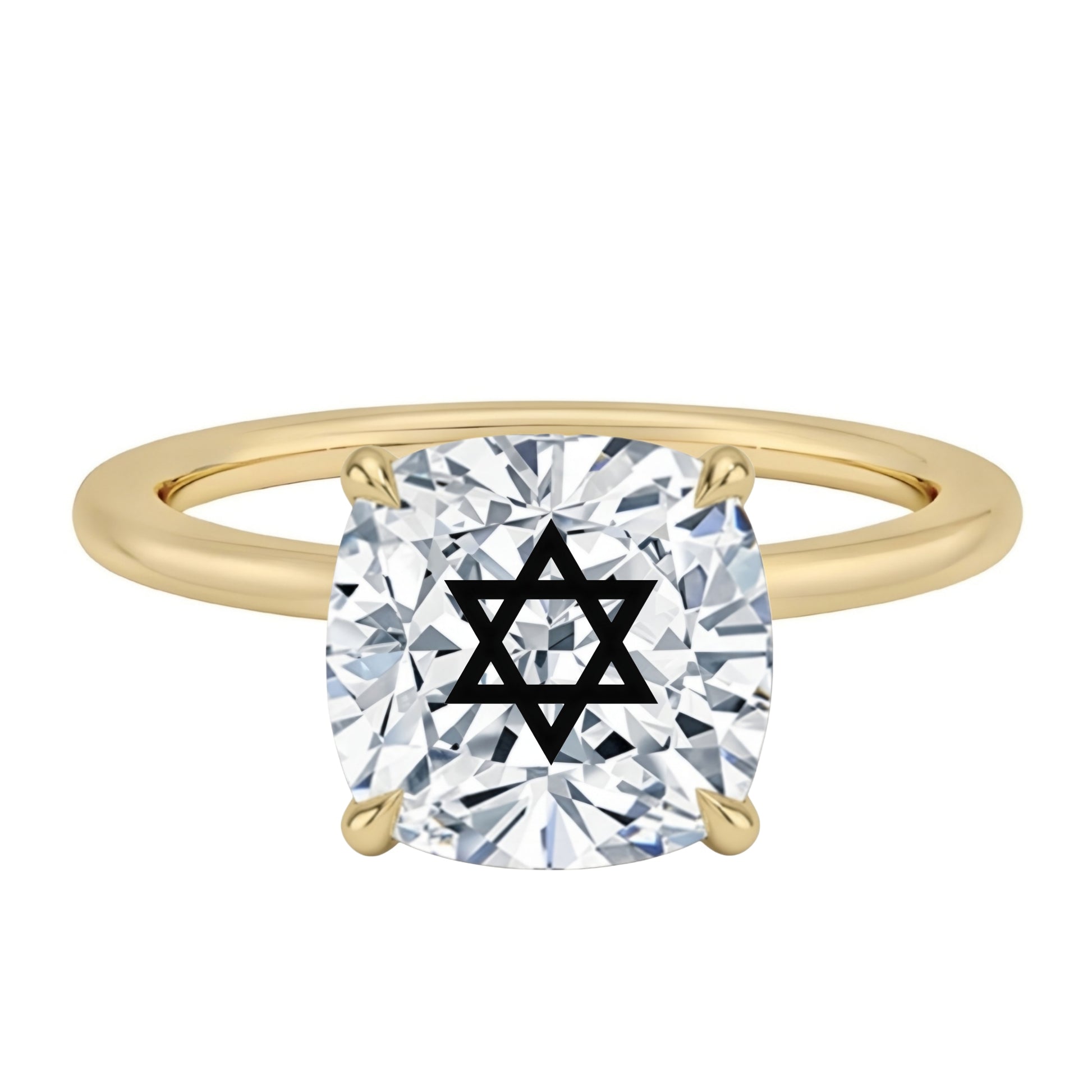 טבעת יהלום מעבדה קושן חריטה מגן דוד - זהב 14 קראט צהוב/לבן/רוז גולד