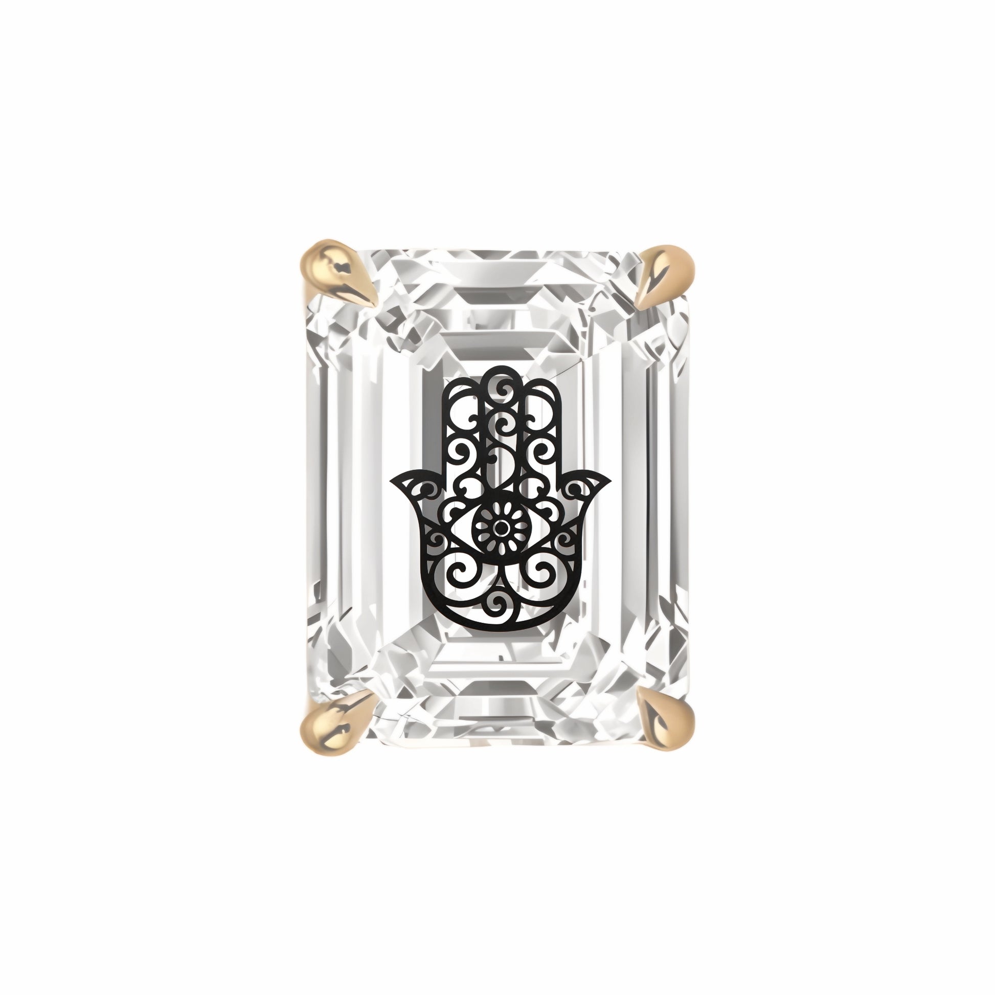 עגיל אבן מוסונייט אמרלד עם חריטת לייזר חמסה – זהב 14 קראט צהוב/לבן/רוז גולד – עגיל ייחודי עם מסר רוחני