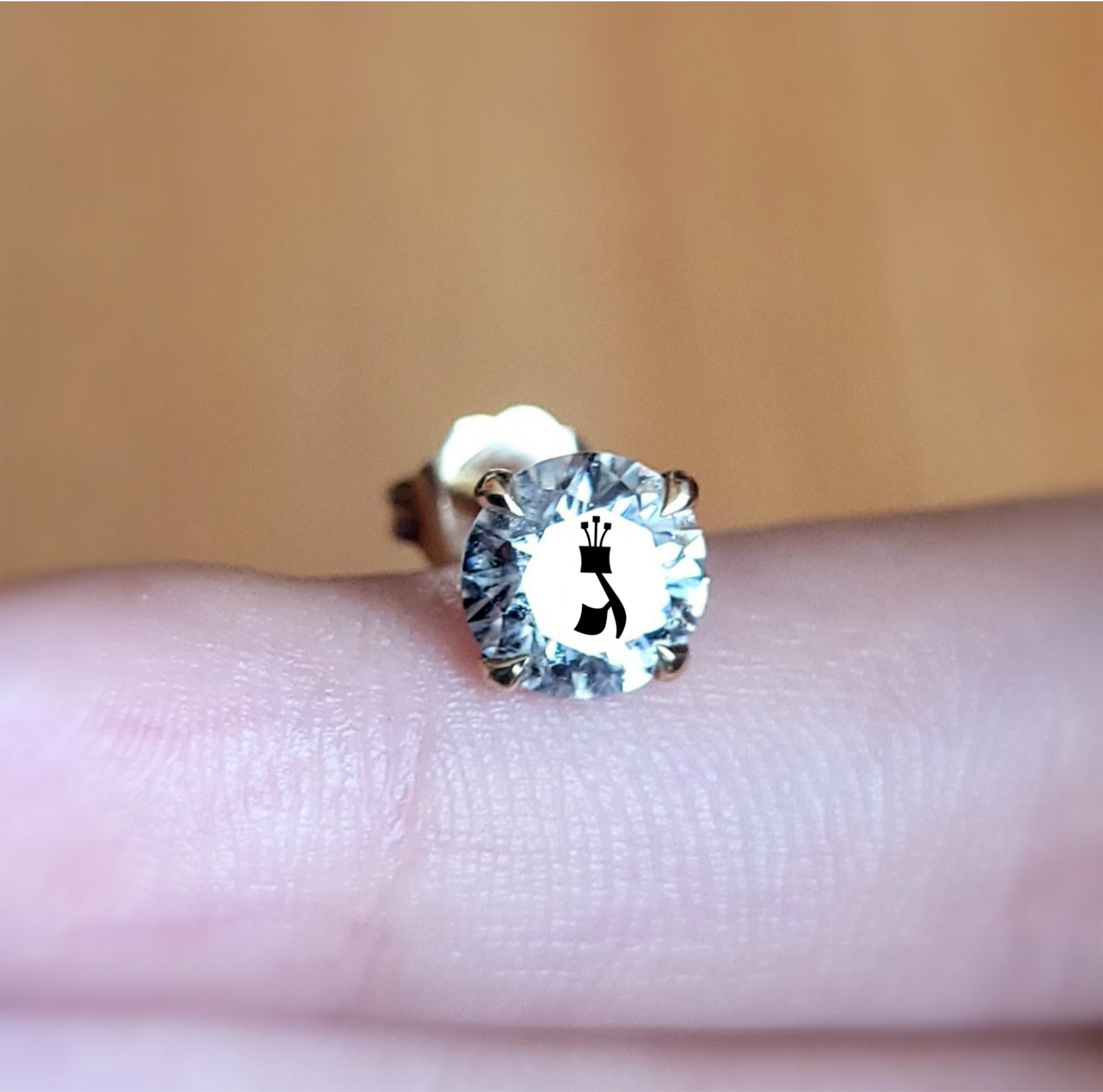 עגיל אבן מוסונייט עגול עם חריטת לייזר אות תנכית – זהב 14 קראט צהוב/לבן/רוז גולד