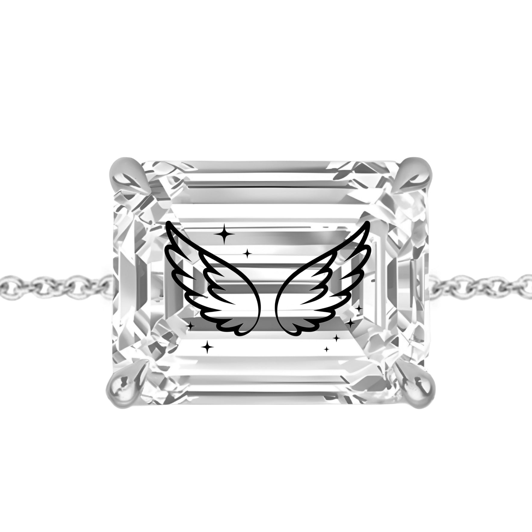 צמיד אבן מוסונייט אמרלד מרחף חריטה כנפי מלאך כוכבים - כסף 925