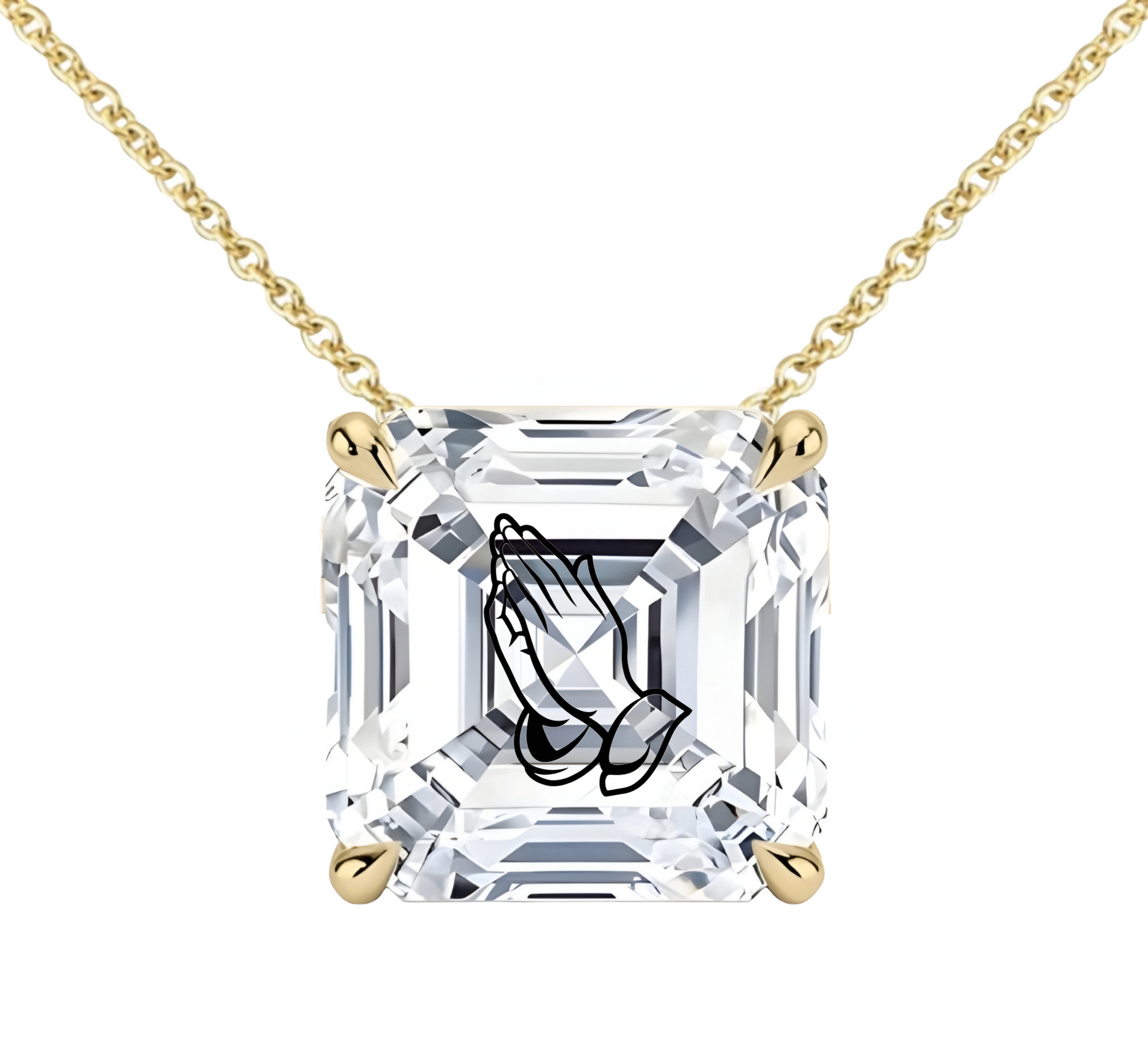 שרשרת אבן מוסונייט אשר מרחף חריטה ידיים מתפללות - זהב 14 קראט צהוב/לבן/רוז גולד