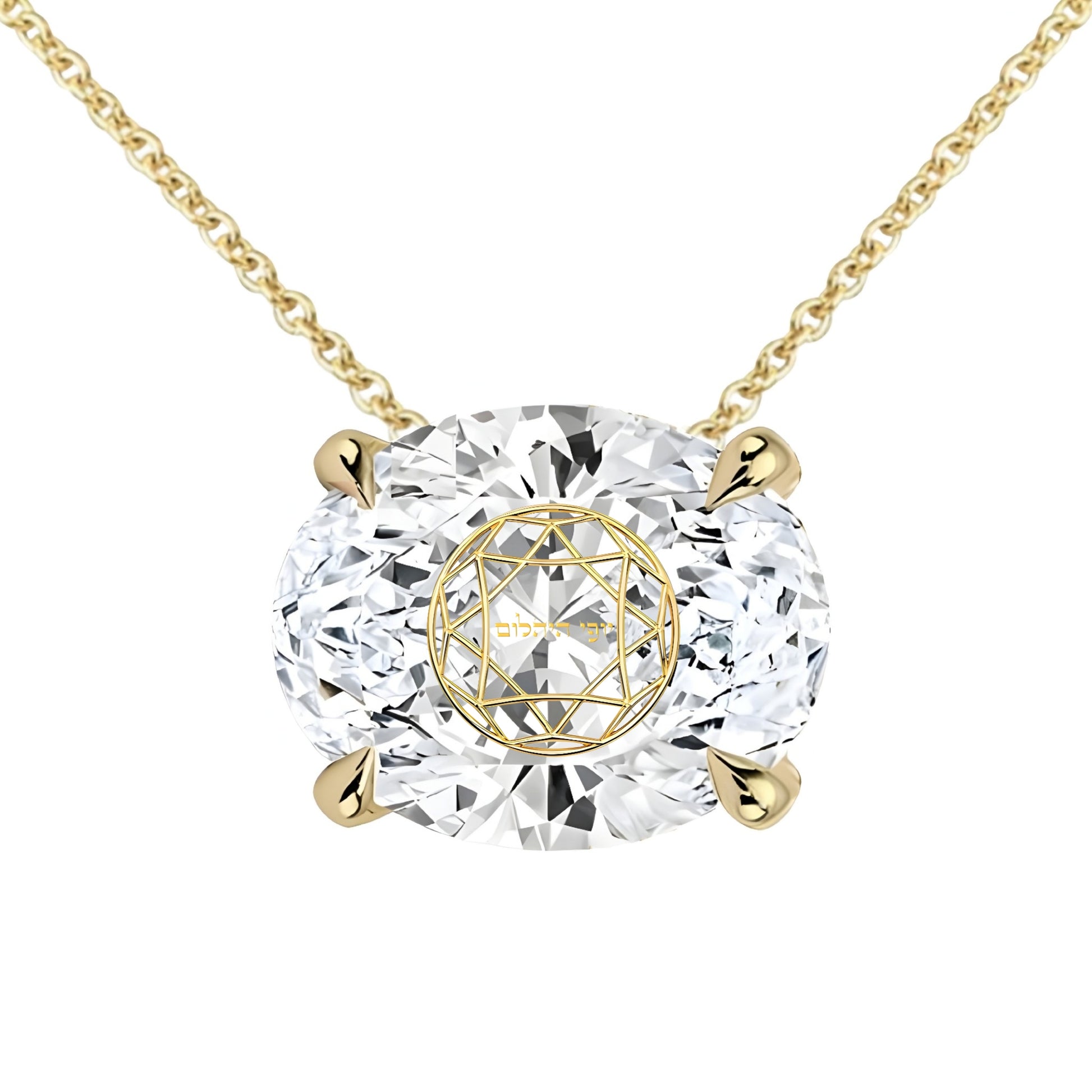 שרשרת יהלום מעבדה אובל מרחף עם חריטת לייזר בעיצוב אישי - זהב 14 קראט צהוב/לבן/רוז גולד