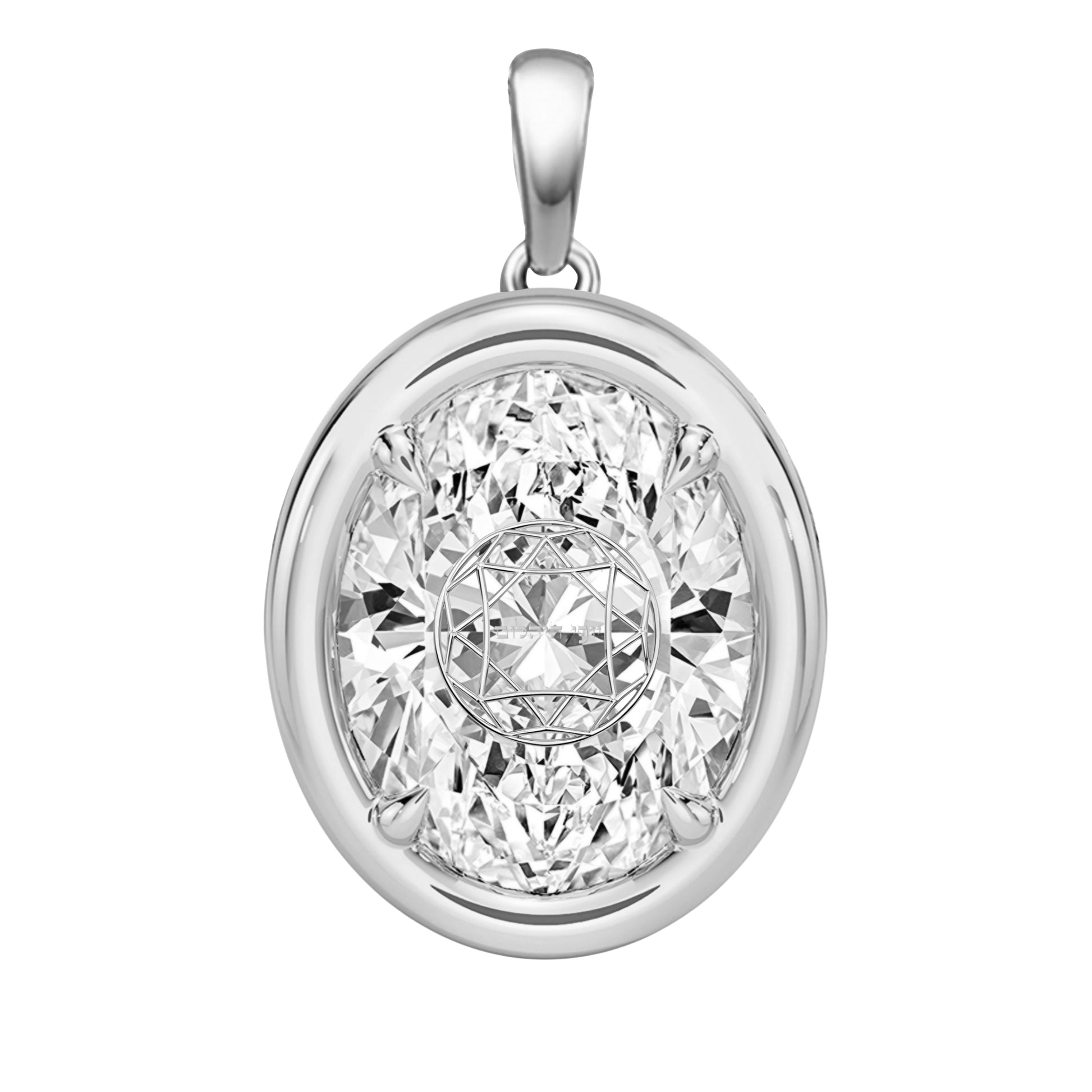 תליון אבן מוסונייט אובל עם חריטת לייזר בעיצוב אישי - שיבוץ בזל ציפורני חתול כסף 925