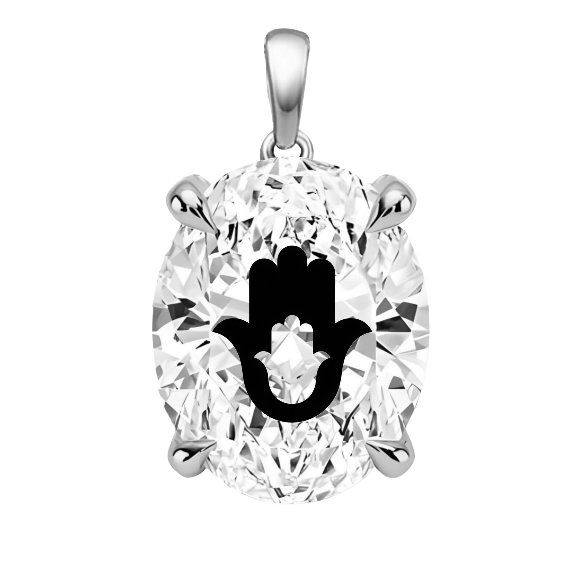 תליון אבן מוסונייט אובל עם חריטת לייזר חמסה בחמסה - כסף 925