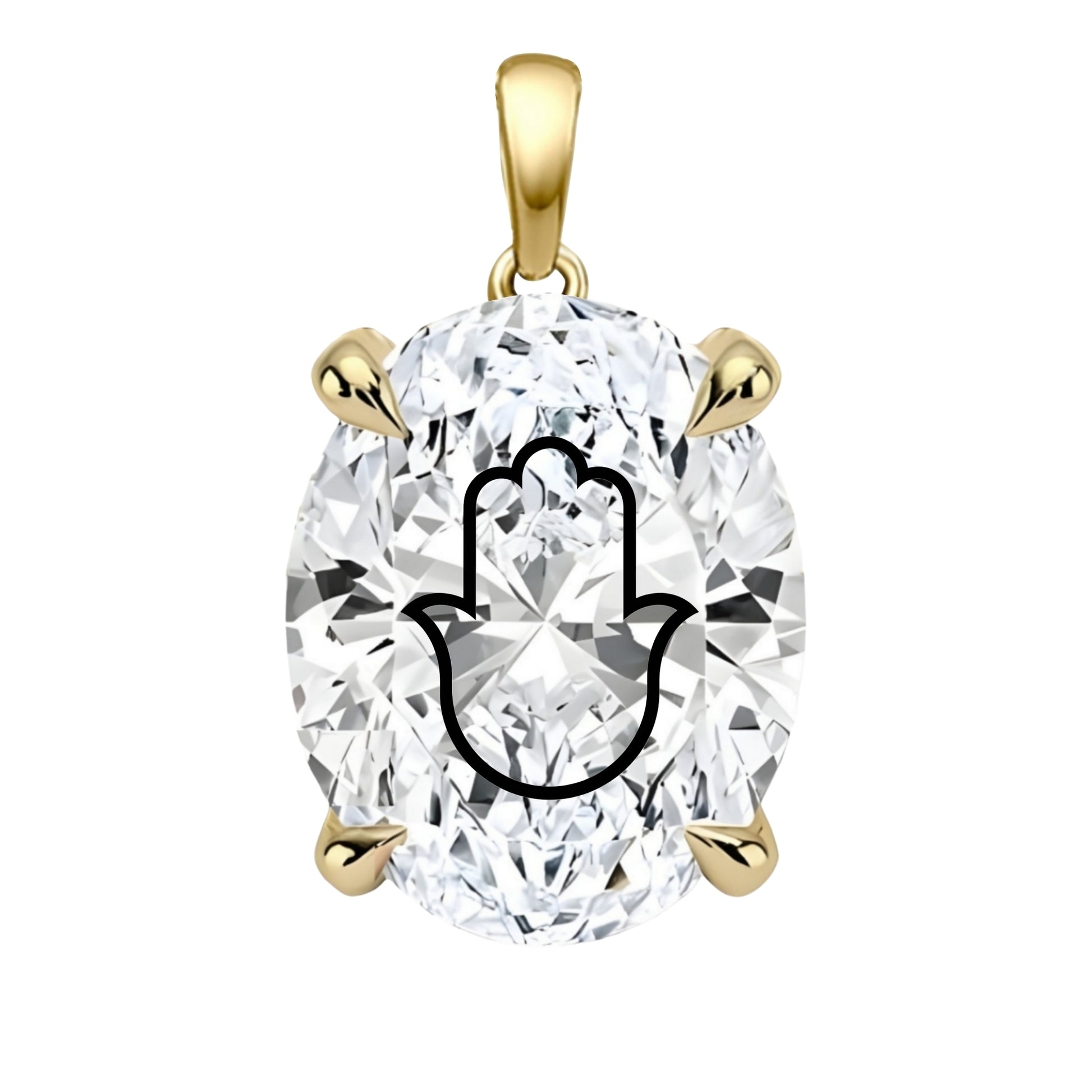 תליון אבן מוסונייט אובל עם חריטת לייזר חמסה - זהב 14 קראט צהוב/לבן/רוז גולד
