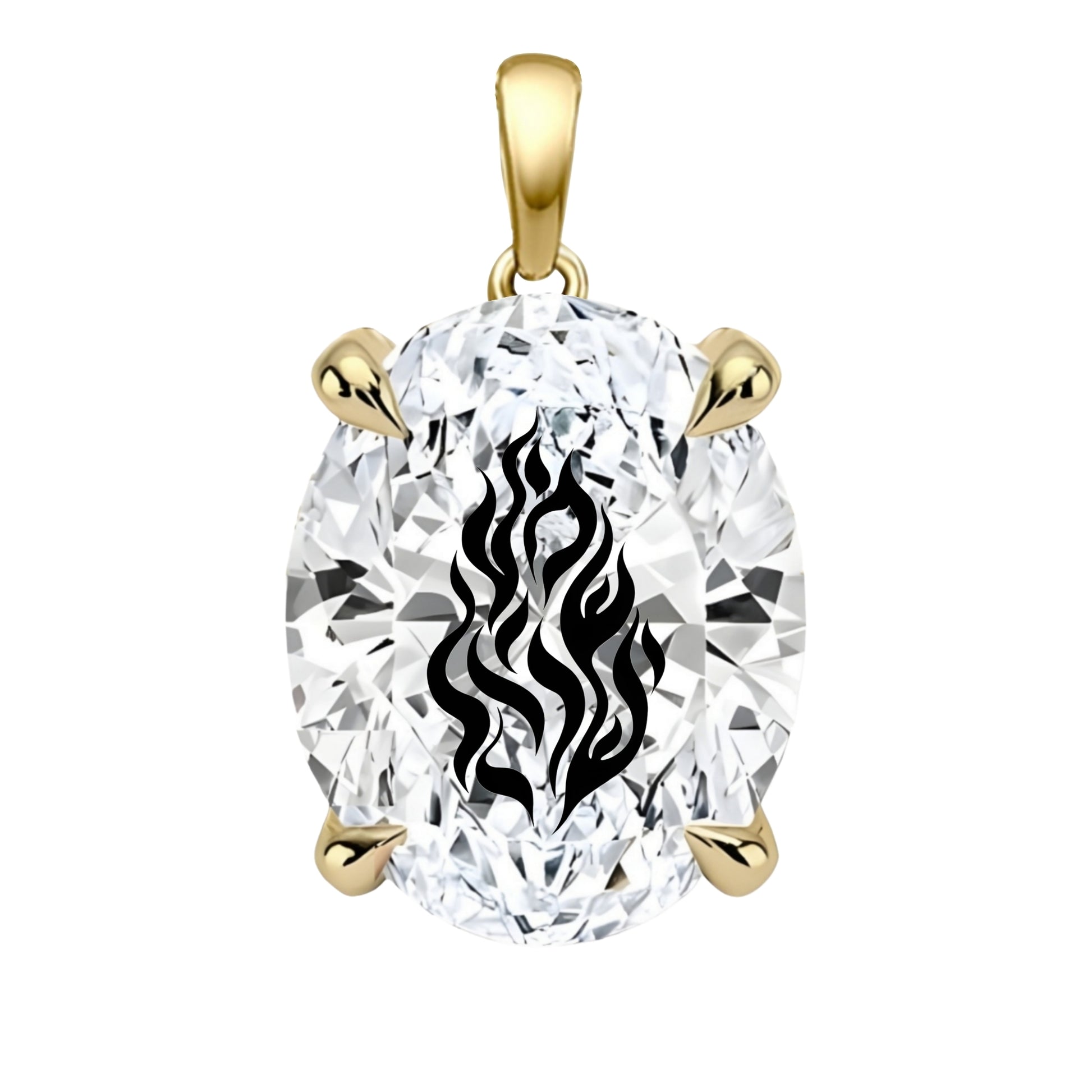 תליון אבן מוסונייט אובל עם חריטת לייזר שמע ישראל - זהב 14 קראט צהוב/לבן/רוז גולד