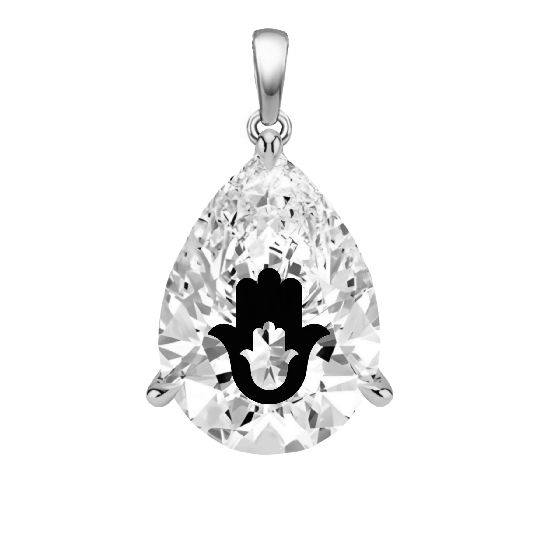 תליון אבן מוסונייט טיפה עם חריטת לייזר חמסה בחמסה - כסף 925