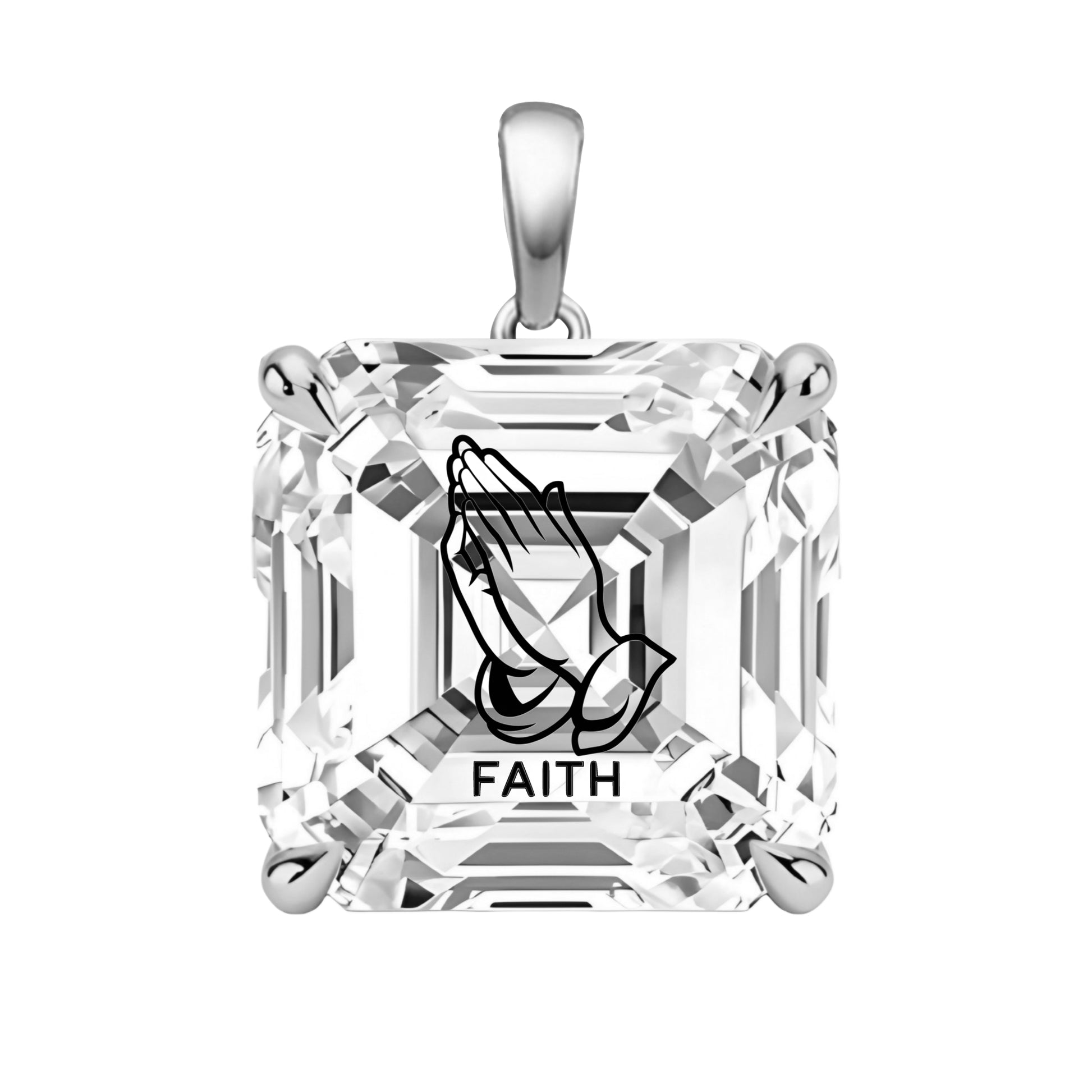 תליון אבן מוסונייט אשר עם חריטת לייזר ידיים מתפללות FAITH - כסף 925
