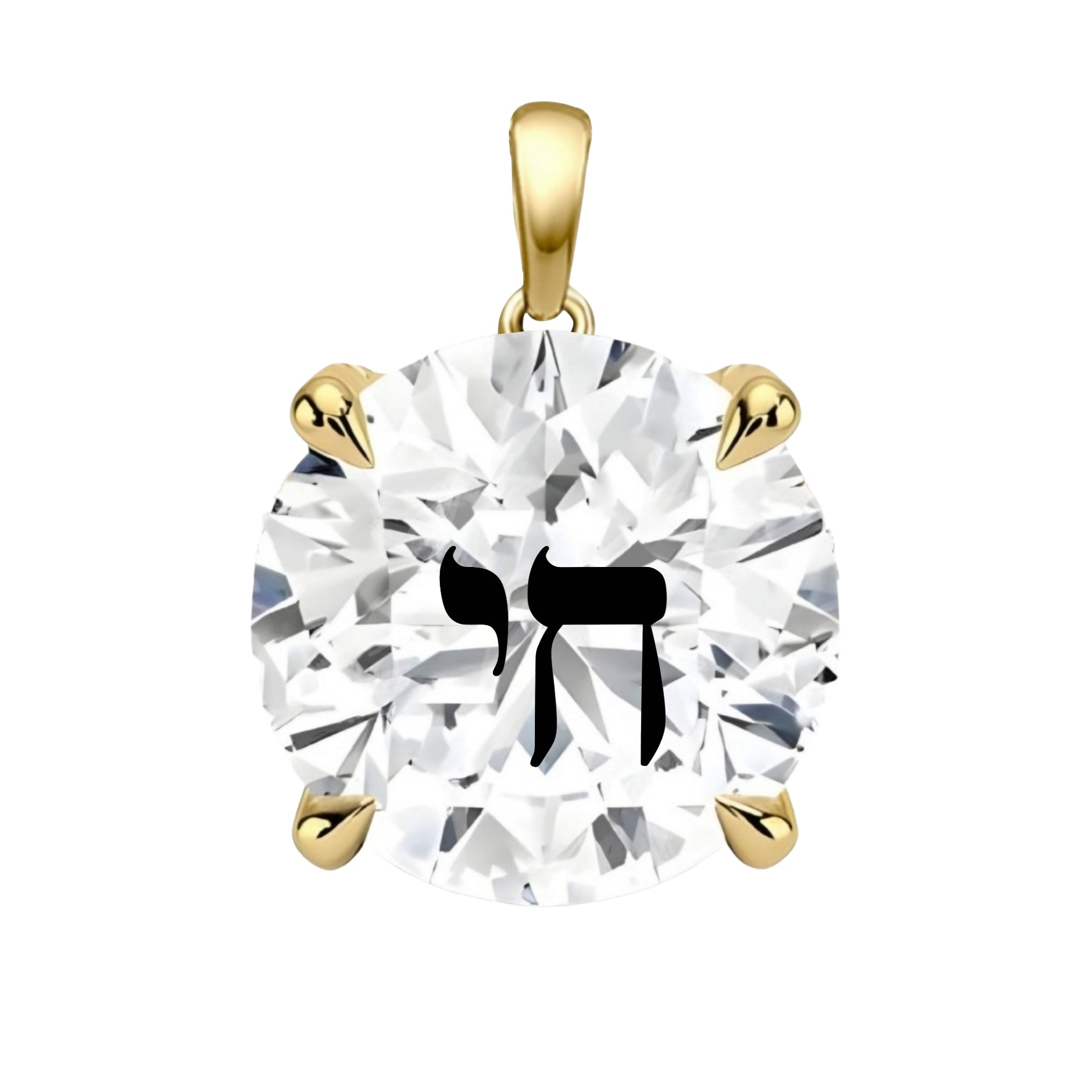 תליון אבן מוסונייט עיגול עם חריטת לייזר חי - זהב 14 קראט צהוב/לבן/רוז גולד