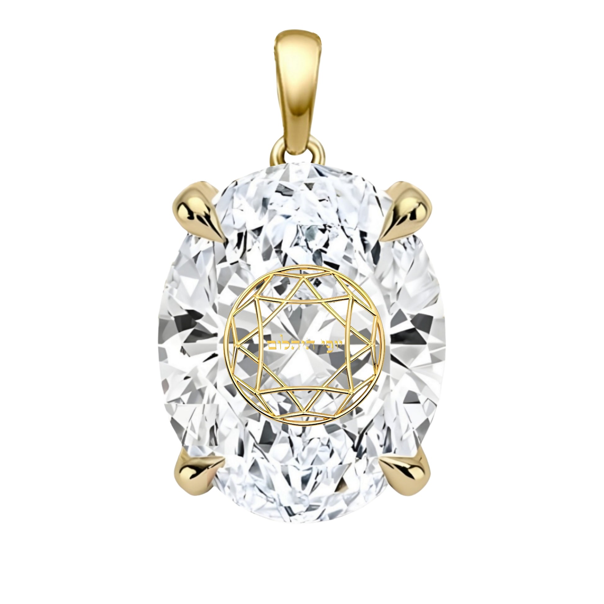 תליון יהלום מעבדה אובל עם חריטת לייזר בעיצוב אישי - זהב 14 קראט צהוב/לבן/רוז גולד