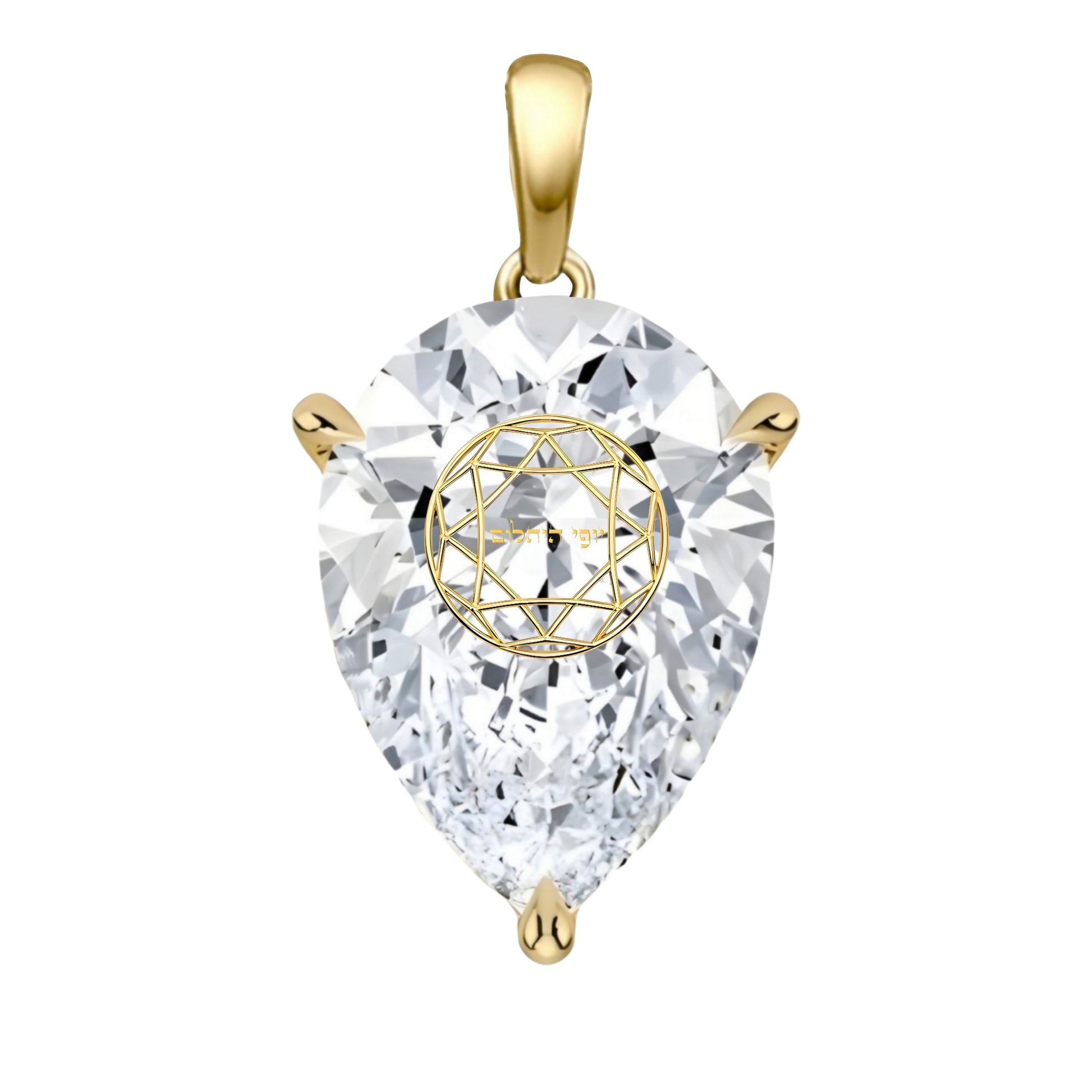 תליון יהלום מעבדה טיפה עם חריטת לייזר בעיצוב אישי - זהב 14 קראט צהוב/לבן/רוז גולד