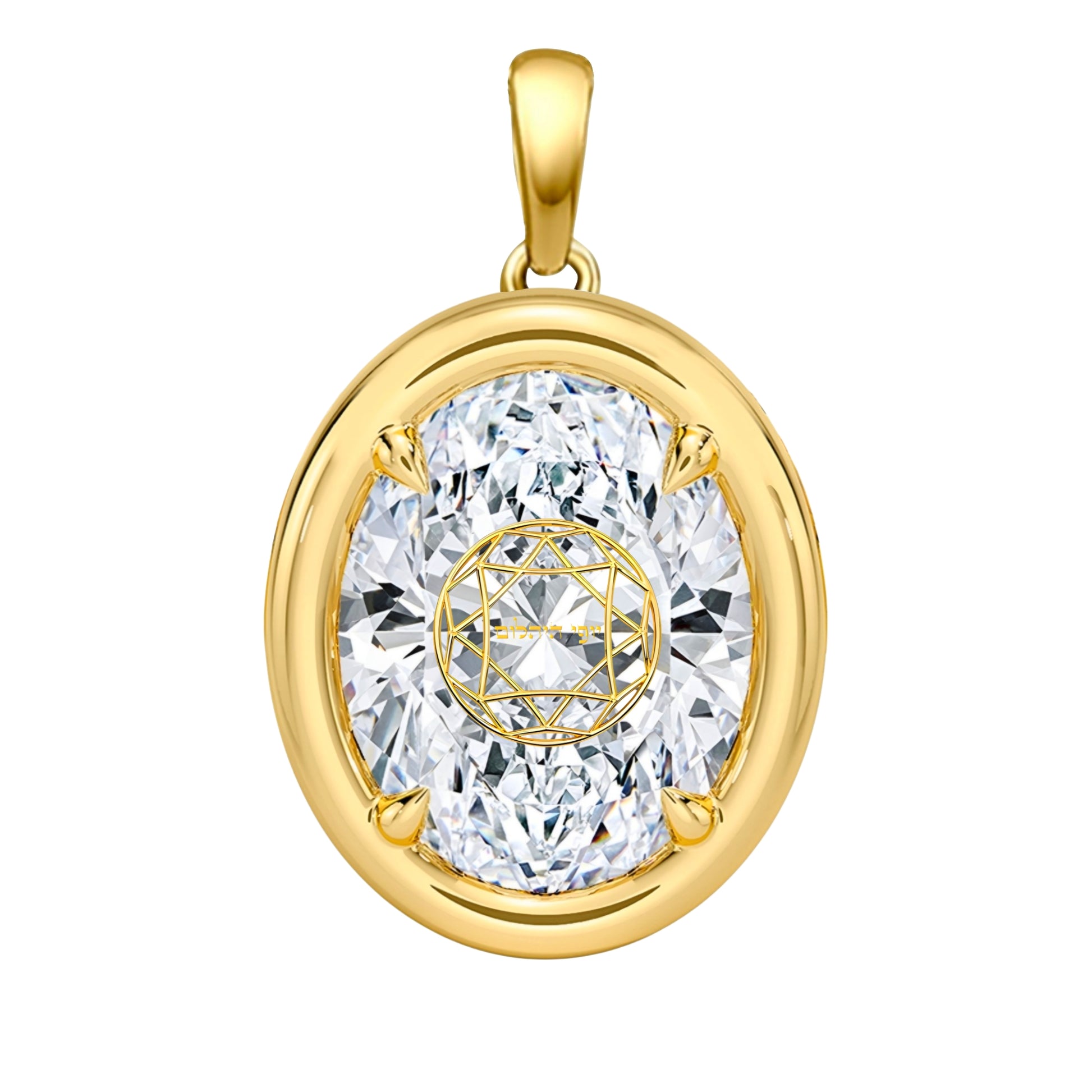 תליון יהלום מעבדה אובל שיבוץ בזל וציפורני חתול זהב 18 קראט צהוב/לבן/רוז גולד