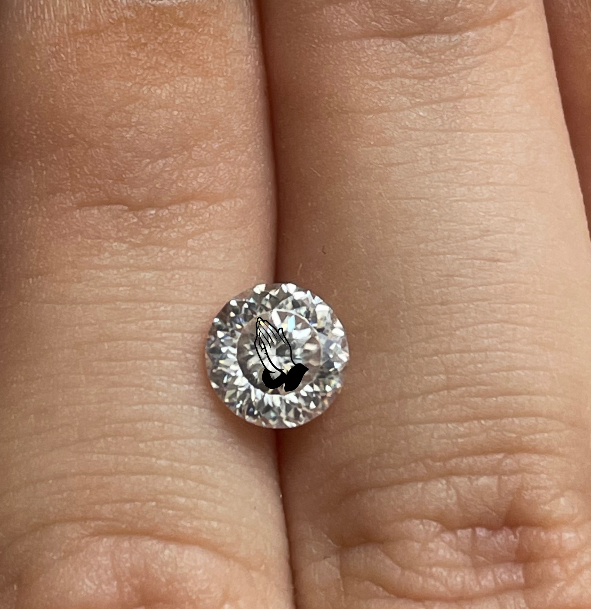 עגיל אבן מוסונייט עיגול בחיתוך מיוחד עם חריטת לייזר ידיים מתפללות – זהב 14 קראט צהוב/לבן/רוז גולד