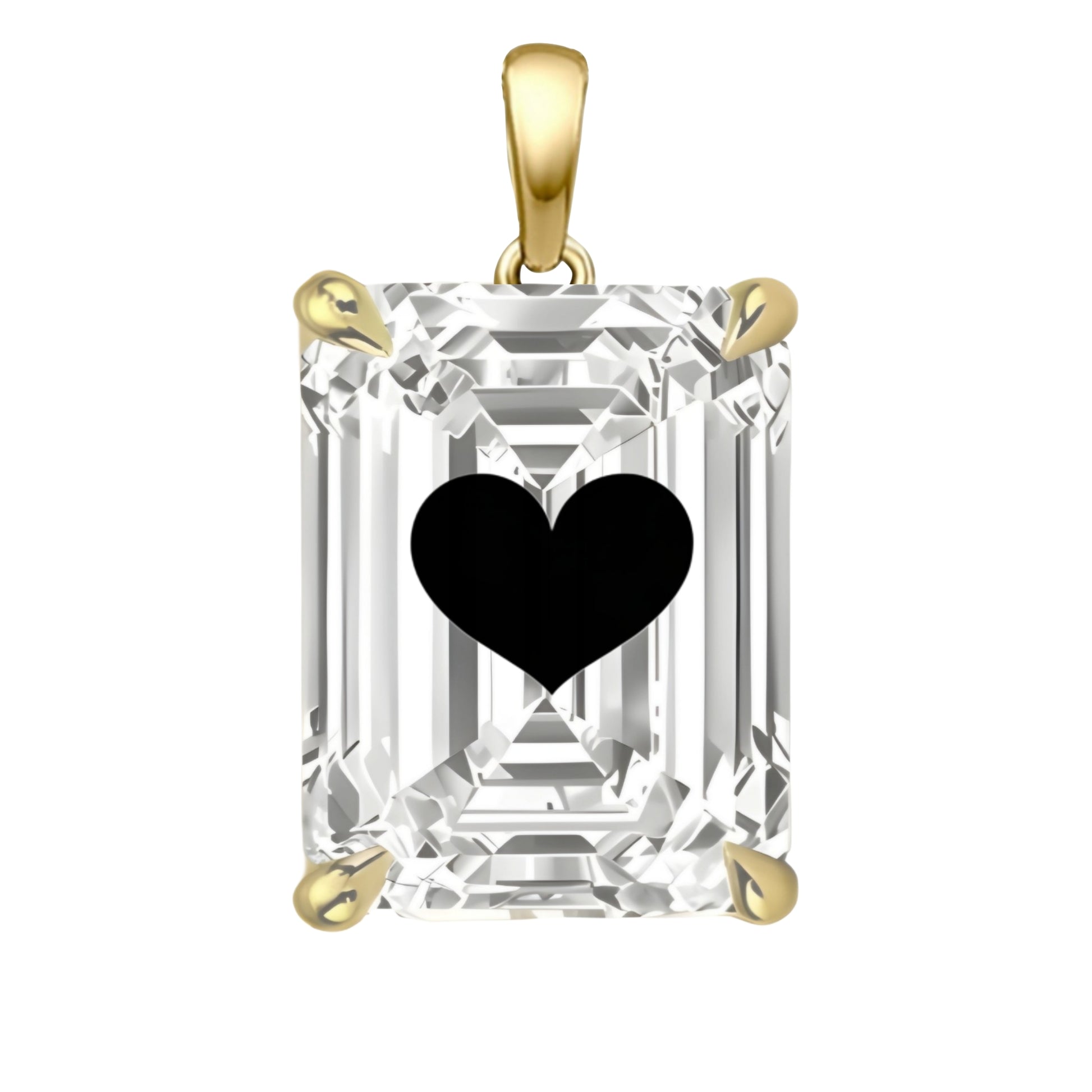 Lab Grown Diamond Emerald Pendant With Heart Laser Engraved On The Diamond 14K Gold