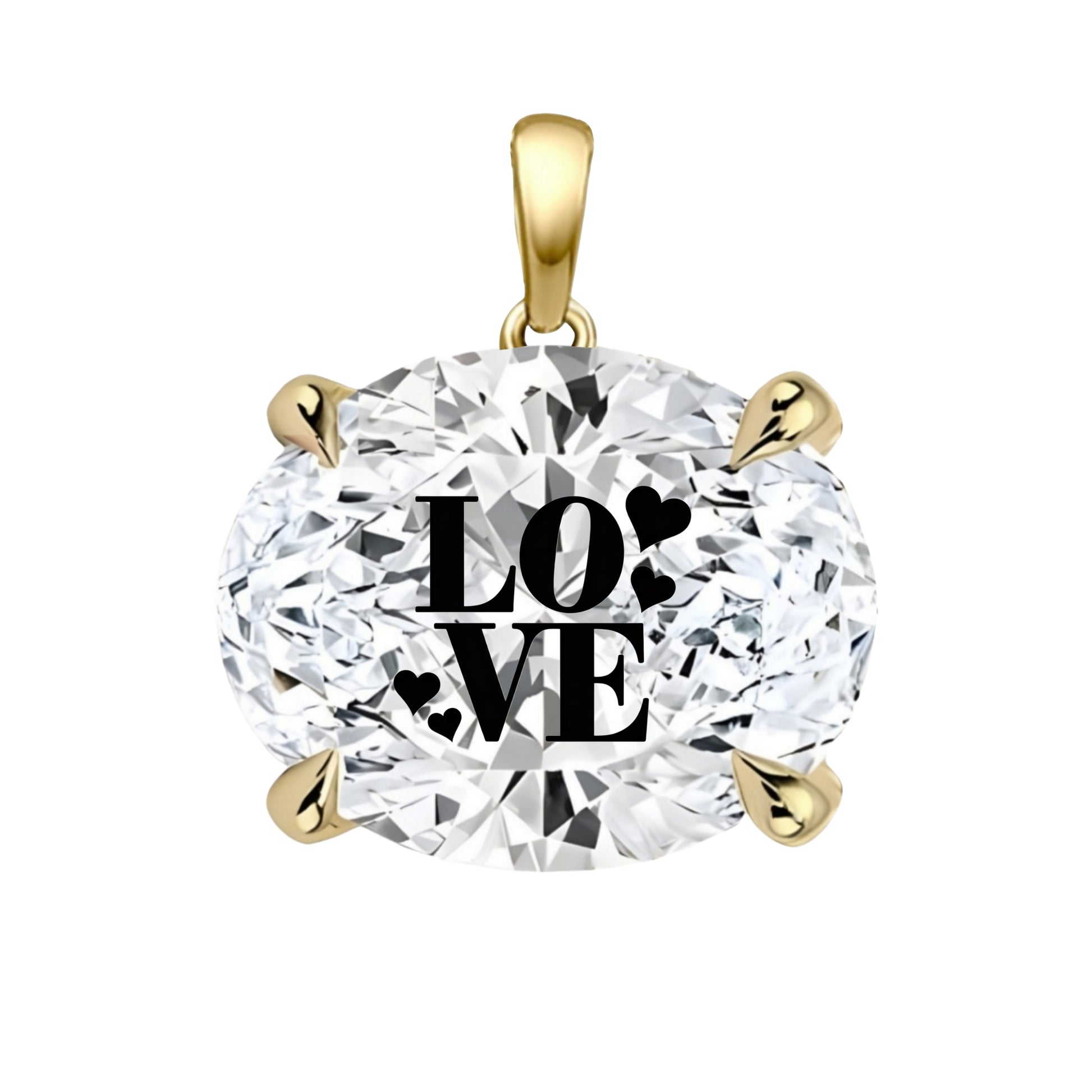 תליון אבן מוסונייט אובל עם חריטת לייזר LOVE - זהב 14 קראט צהוב/לבן/רוז גולד